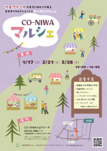 2月と3月、あと残り2回のCO-NIWAマルシェ。おなじみの出店者の皆さんとお待ちしております!